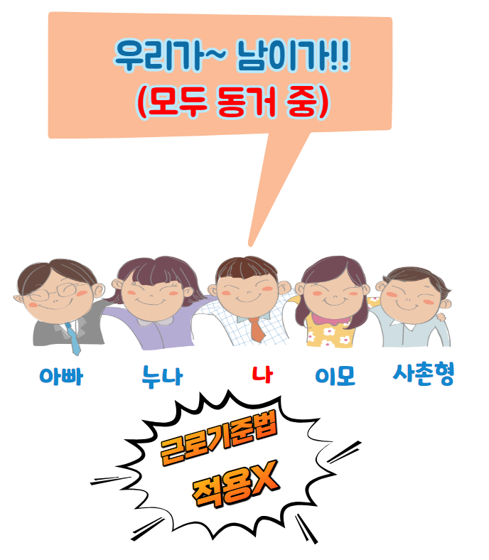 친족인 근로자 가운데 한 사람이라도 동거한다고 볼 수 없는 경우 근로기준법이 적용됩니다.