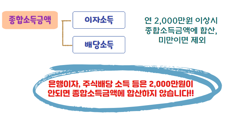 이 소득 중 국내에서 발생한 [이자소득], [배당소득]은 연 2,000만원이 넘어야 종합소득금액에 합산해 신고합니다.