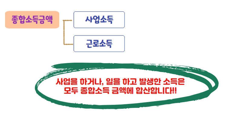 [사업소득], [근로소득]은 금액에 관계없이 종합소득금액에 합산합니다.