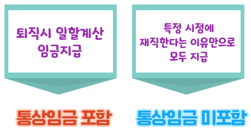 그러나, 정액 혹은 근무 일수에 따라 비례적으로 지급되는 경우에는 통상임금에 포함됩니다.