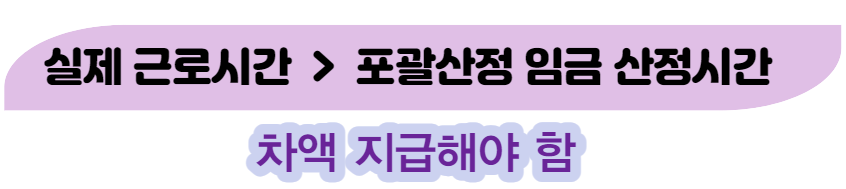 그러나 계산 편의 목적으로 도입된 경우라면 실제 근로한 시간에 따라 산정된 금액이 포괄 산정하여 지급된 금액보다 많다면 사용자는 그 차액을 지급해야 합니다.