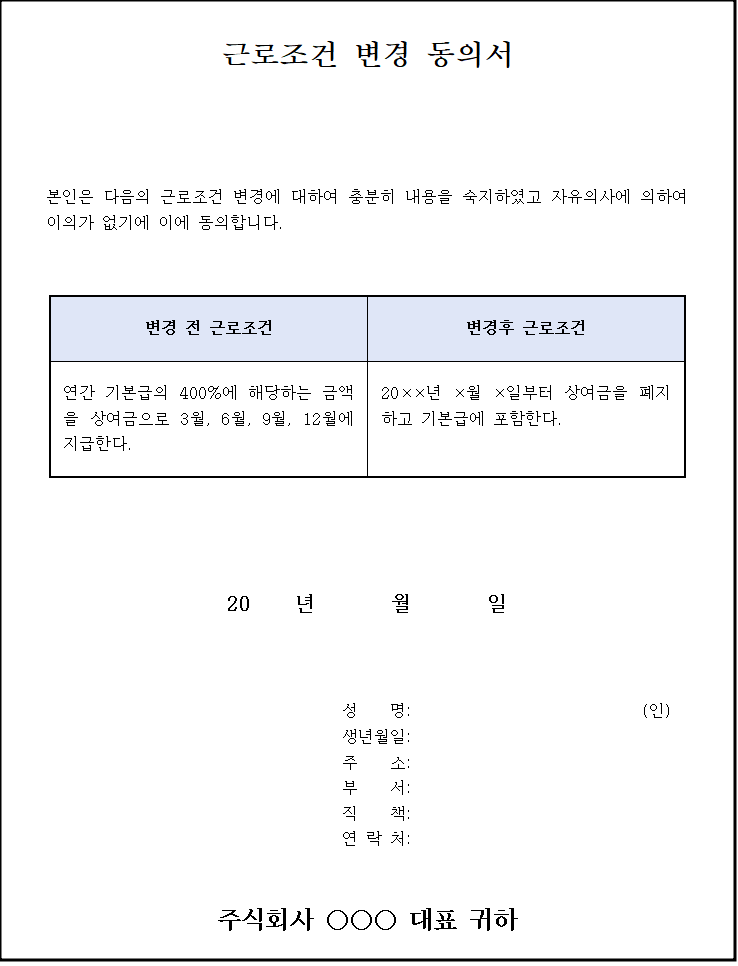 근로조건의 결정 및 변경(근로조건 변경 동의서 서식 포함)