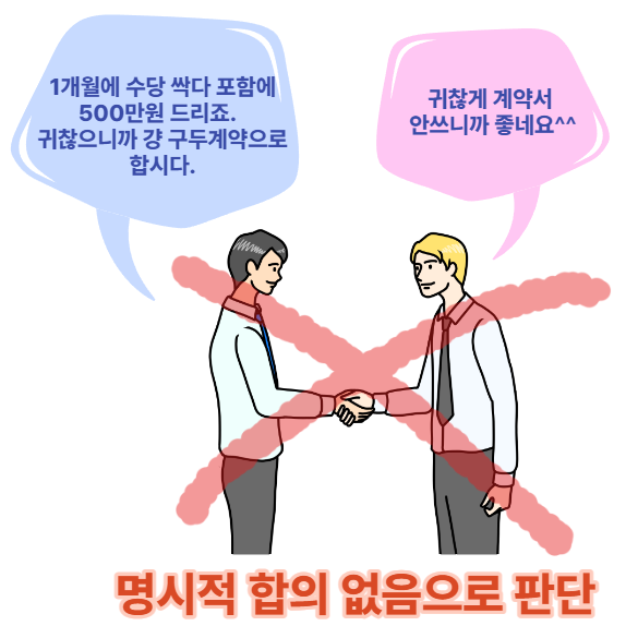 구두 근로계약도 법적 효력이 인정될 수 있지만, 이는 근로자의 명시적 합의가 없는 경우로 판단될 가능성이 큽니다.