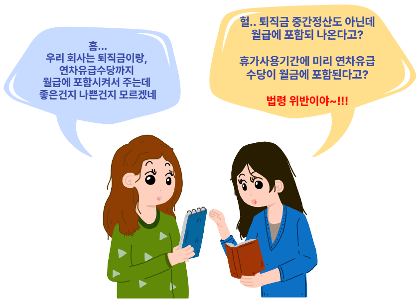 즉, 연차 유급휴가를 사용해야 하는 기간에는 미리 수당으로 지급하지 않아야 합니다.